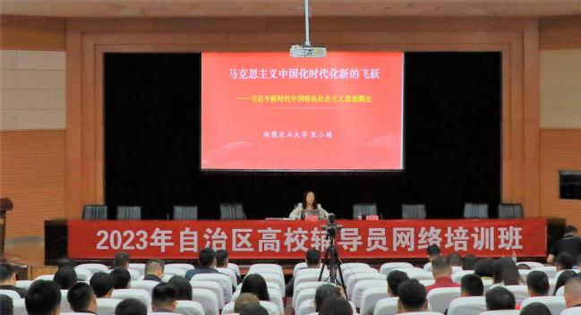 为深入学习贯彻党的二十大精神,扎实开展学习贯彻习近平新时代中国特色社会主义思想主题教育,贯彻落实教育部和自治区党委有关部署要求,进一步推动新疆高校辅导员专业化、职业化建设。5月30日,由自治区党委教育工委主办,新疆高校辅导员研修中心(新疆农业大学)承办的2023年新疆高校辅导员网络培训班开班式在新疆农业大学举行,来自全疆46所高校350名辅导员参加培训,新疆农业大学全体专兼职辅导员参加开班式。