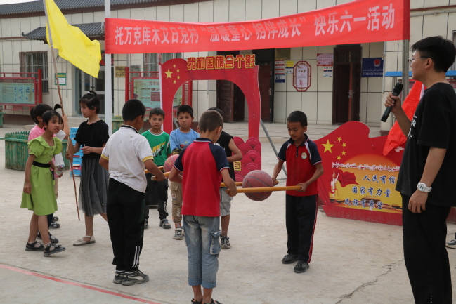 托万克拜什艾日克村工作队组织开展了“庆六一趣味运动会”,一年级学生木尼瓦尔·西尔艾力说:“谢谢新疆农业大学的老师们陪我们过节,还送给我们这么多礼物,希望以后每个节日都能和你们一起过……”