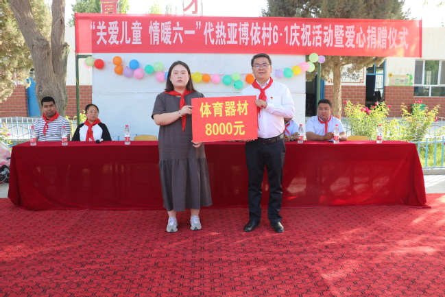 5月30日,一场“关爱儿童 情暖六一”庆祝活动暨爱心捐赠仪式在代热亚博依村小学举行。工作队向村小学捐赠了价值8000元的体育器材礼包及学习文具用品。代热亚博依村小学副校长黄心仪向新疆农业大学工作队的义行义举表示感谢,她说此次捐助不仅是经济上、物质上的帮助,更重要的是精神上的鼓舞,相信同学们会加倍珍惜学习机会,完善自己、发展自己,将来用丰厚的知识和爱心回报社会。