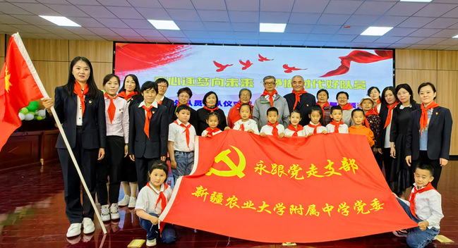 为全面贯彻党的二十大精神,深入推进学习贯彻习近平新时代中国特色社会主义思想主题教育,扎实做好关心下一代工作,助力少年儿童健康成长,5月31日,离退休职工服务处第十四党支部与新疆农业大学附属中学小学部共同开展“童心逐梦向未来·争做时代好队员”少先队入队仪式。离退休职工服务中心第十四党支部部分老党员应邀参加活动。