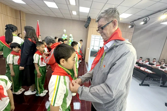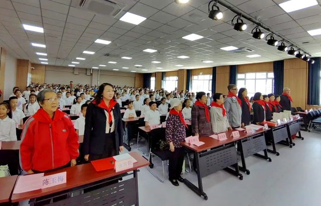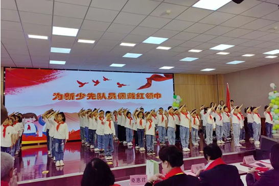 在农大附中小学部召开的“童心逐梦向未来·争做时代好队员”少先队入队仪式暨“红领巾奖章”一星章颁奖仪式上,老教师们给新入队的少先队员授红领巾。这红领巾传递的正是老一辈对下一代的关心关爱,是理想信念的传承,是红色精神的传承,更是引领广大少先队员扣好人生第一粒扣子,迈好人生第一个台阶。离退休职工服务处第十四党支部白燕代表老教师在会上发言,她向新入队的少先队员表示衷心祝贺,并给少先队员们提以下四点希望;一是要童心向党立志向;二是要童心向党爱组织;三是要童心向党强道德;四是要童心向党练本领。