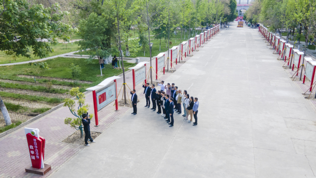全体党员来到八一大道核心区——“习语”宣传栏和“习近平总书记故事园”,作为学校开放思政课堂和生动育人阵地,以生动的形式展示了习近平总书记教育思想重要论述。在这里,刘春海带领全体党员重温入党誓词,马克思主义学院教师贾悦带领全体党员回顾了党的光辉历程,全体党员接受了一次深刻的党性教育。