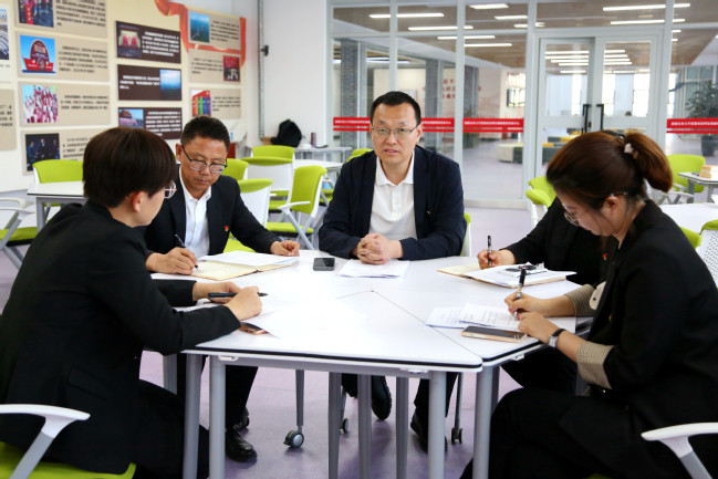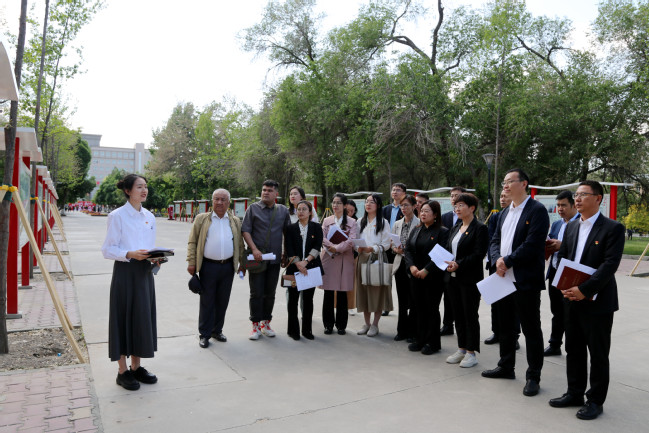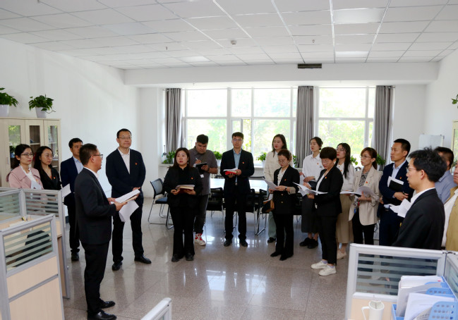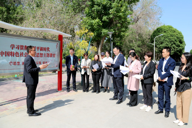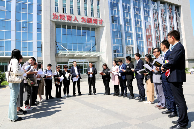 “教育是国之大计、党之大计。习近平总书记指出:‘要从党和国家事业发展全局的高度,坚守为党育人、为国育才’,深刻回答了培养什么人、怎样培养人、为谁培养人这一根本问题……”在行政楼门前,刘春海带领全体党员重温了习近平总书记关于“为党育人、为国育才”的提出及重要批示精神,勉励全体党员要强化为党育人、为国育才的导向,全面贯彻党的教育方针,大力培养爱国爱疆、担当奉献的社会主义建设者和接班人,为实现新疆社会稳定和长治久安作出新的更大贡献。