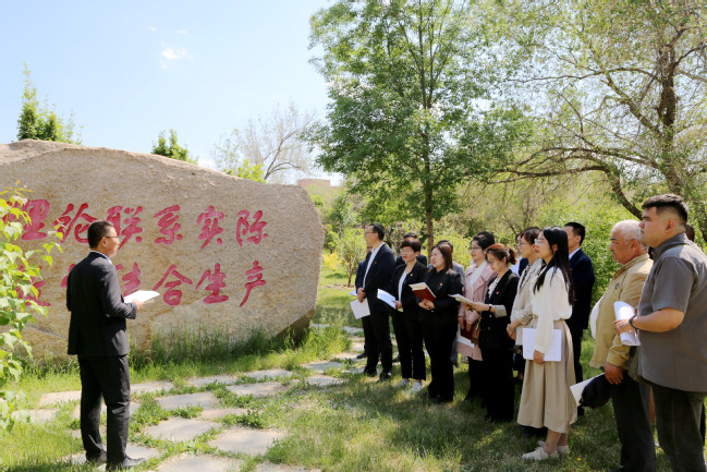 为推进学习贯彻习近平新时代中国特色社会主义思想主题教育往深里走、往实里走、往心里走,深入开展“五个好”党支部创建工作,5月31日下午,新疆农业大学机关第三党支部、马克思主义学院教工第二党支部联合开展“农大人游农大”八个一研学实践活动,即开展一次习近平新时代中国特色社会主义思想学习教育、一次红色路线参观、一次党性锤炼教育、一次校史校情教育、一次红色基因内涵教育、一次主题微党课、一次调查研究、一次思想大讨论,带领支部党员重走校园红色之路,感受建校70余年的办学成就和改革事业发展的巨大变化,传承红色基因,汲取奋进力量,为建设一流农业大学努力奋斗。