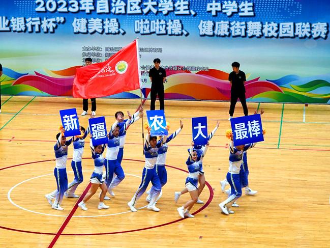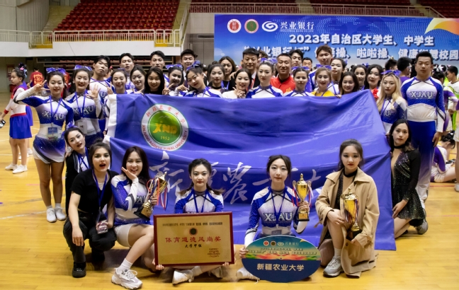 6月3日,2023年自治区大学生、中学生“兴业银行杯”健美操、啦啦操、健康街舞校园联赛在新疆师范大学圆满落幕。新疆农业大学共派出健美操队35名队员参加了本次比赛,共获得两个一等奖(啦啦操规定花球、啦啦操示范套路花球),两个二等奖(啦啦操规定爵士、啦啦操规定技巧)及体育道德风尚奖的好成绩!