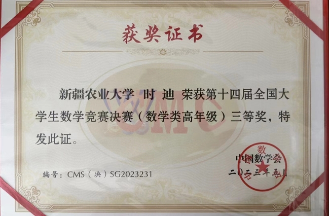 近日,由中国数学会主办的第十四届全国大学生数学竞赛(简称CMC)决赛在广州圆满落幕。该项赛事分为初赛和决赛。本届竞赛全国共设32个赛区,参赛高校达1024所,共有逾23万名学生参赛。在初赛中,我校共69人获奖,其中全国一等奖20名、二等奖24名、三等奖25名,同时,来自数理学院数学194班学生时迪、计算机与信息工程学院电子信息科学与技术202班学生豆文博分别跻身数学组和非数学组决赛。