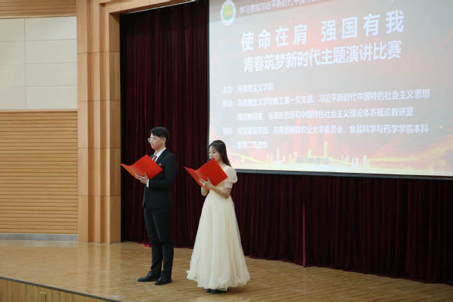 “如果我是一条小溪,就要流向沙漠,去滋润一片绿洲……”6月3日上午,由新疆农业大学马克思主义学院主办,马克思主义学院教工第一党支部、学院习近平新时代中国特色社会主义思想概论教研室、毛泽东思想和中国特色社会主义理论体系概论教研室承办,校党委宣传部、共青团新疆农业大学委员会、食品科学与药学学院本科生第二党支部协办的学习贯彻习近平新时代中国特色社会主义思想主题教育——“使命在肩 强国有我”青春筑梦新时代主题演讲比赛在会堂学术报告厅举办。