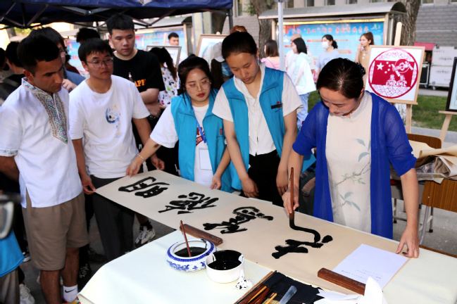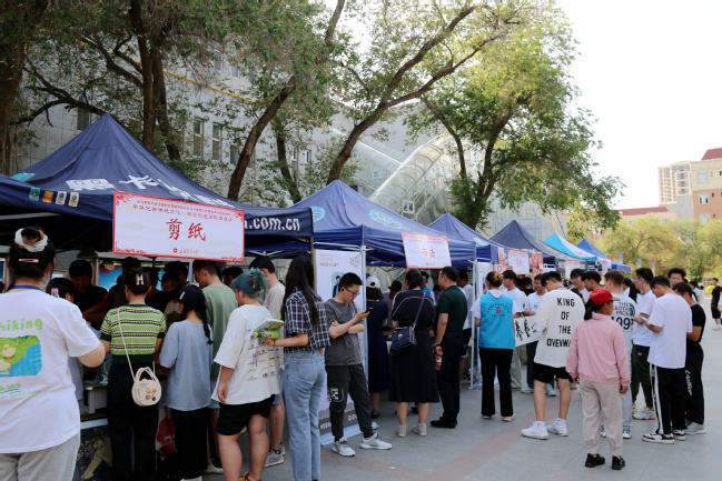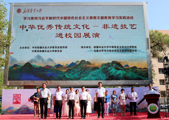 为扎实推进学习贯彻习近平新时代中国特色社会主义思想主题教育,深入开展文化润疆工作,弘扬中华优秀传统文化。在第7个全国“文化和自然遗产日”来临之际,由新疆农业大学党委宣传部、校团委主办,中国语言文学与艺术学院,乌鲁木齐市沙依巴克区文联民间文艺家协会联合承办的“文化润疆 文化润校”中华优秀传统文化——非遗技艺展演走进我校。