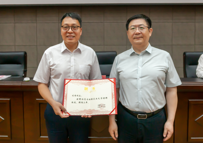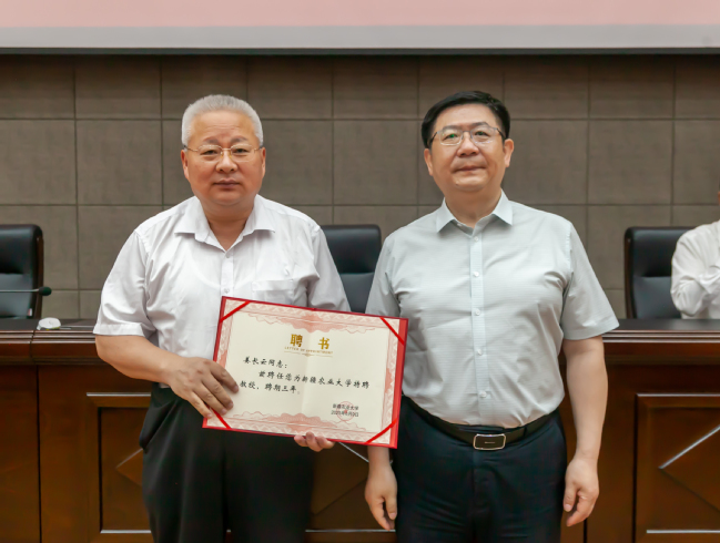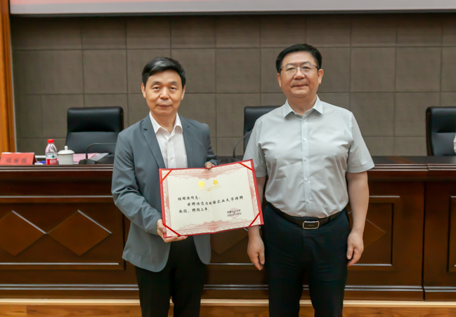 此次高峰论坛邀请了国家粮食安全战略研究院院长、中国人民大学农业与农村发展学院“杰出学者”特聘教授程国强,国家发改委产业经济与技术经济研究所姜长云研究员,中国农业大学经济管理学院院长司伟教授,自治区人大农业农村委员会副主任委员甘昶春等。高峰论坛由新疆农业大学校长蒋平安教授主持。新疆农业大学党委书记谢树青教授为程国强、姜长云、司伟、甘昶春四位专家颁发新疆农业大学特聘教授聘书。