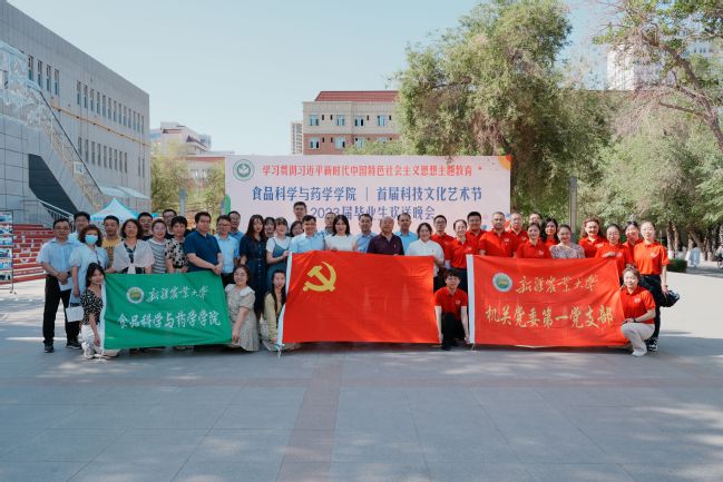 座谈交流结束后,两个支部成员来到明德广场,参加了食品科学与药学学院首届科技文化艺术节启动仪式,在讲解员的带领下深度了解了学院专业特色优势以及产学研融合发展的丰硕成果。