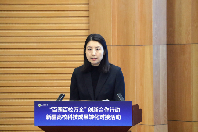 自治区教育厅党组成员、副厅长王珊珊出席活动并致辞,强调了高校科技成果转化工作的重要性,希望各高校加强与企业合作,完善产学研协同创新机制,提升转化效率,为区域经济社会发展提供支撑。