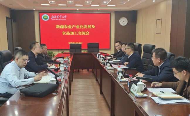 10月24日下午,新疆农业产业化发展及食品加工交流会在我校召开。新疆粮食和物资储备局党委委员、副局长曲贵强,国家粮食和物资储备局科学研究院首席科学家谭斌,新疆粮油科学研究所党支部书记、副所长艾比不拉等出席会议。 会议由党委副书记陈勇主持。