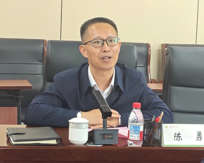陈勇介绍了学校基本情况及服务“三农”的发展历程。他指出,新疆作为国家重要粮食战略储备基地,在小麦等粮食资源方面具有优势。近年来,学校在粮食育种、农产品深加工及全谷物食品创制等领域开展多项研究,为促进新疆粮食产业升级和健康新疆建设发挥积极作用。