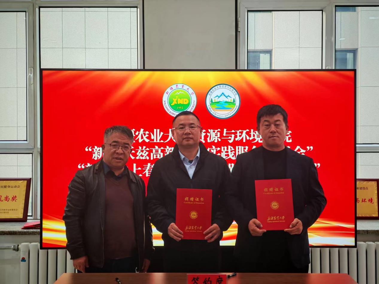 新疆沃兹高新农业有限公司与新疆陇上春生态农业科技有限公司均为生物有机肥生产企业,分别在温宿县、伊宁县建厂。此前,两家企业已与资源与环境学院共建产学研联合培养基地,联合开展试验示范,在改良土壤、促进作物生长等方面取得良好效果。此次捐赠设立的“新疆沃兹高新农业实践服务奖学金”与“新疆陇上春生态农业科技实践服务奖学金”,是校企合作助力人才培养的重要举措之一。