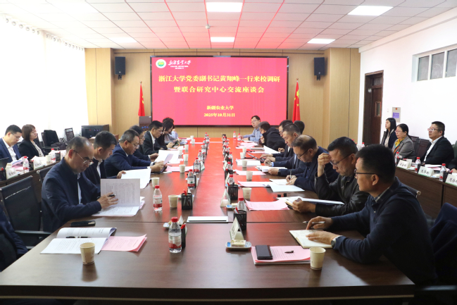 10月31日,浙江大学党委副书记黄翔峰一行13人赴新疆农业大学,围绕联合研究中心建设情况开展专题调研交流。调研组实地考察了学校科研设施与平台,并与我校代表围绕深化合作、共促发展进行了深入座谈。座谈会由学校党委副书记陈勇主持。学校党委副书记、校长郑文新,自治区农业农村厅二级巡视员熊斌、农村科技处副处长陈彦参加座谈会。
