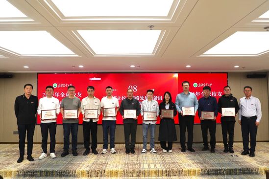 大会举行校友联络处授牌授旗仪式。刘春海宣读了《关于同意成立校友联络处筹备组的批复》。张小楠为2025年下半年新成立的山西校友联络处代表刘维佳授牌授旗,崔龙、刘春海为2025年下半年新成立的10个校友联络处(筹备组)代表授牌。