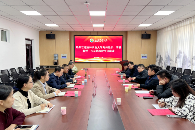11月13日,吉林农业大学创新创业学院院长刘伟一行到我校生命科学学院交流座谈。新疆农科院植保所贾培松研究员,新疆农业大学园艺学院王超男副教授、生命科学学院党政领导班子以及各教研室相关教师参加,座谈由生命科学学院党委副书记、院长贾宏涛主持。