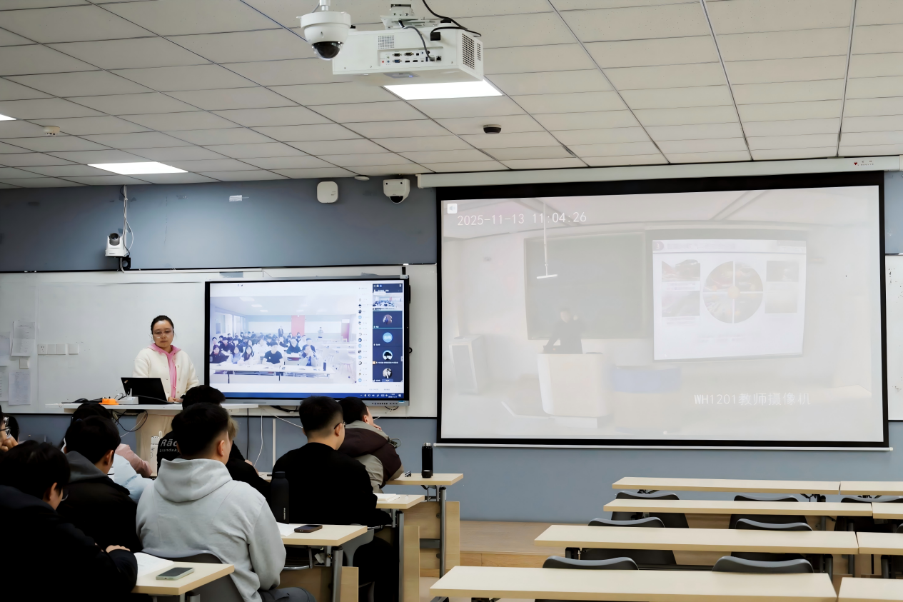 韩毅从智能网联汽车的发展历程切入,系统讲解了其技术定义、分级标准、社会价值以及国内外发展动态与挑战,内容兼具理论深度与行业视野,为两校学生构建了清晰的知识框架。课堂上,两校学生积极思考、踊跃提问,围绕智能网联技术的实际应用与未来趋势,与韩毅展开了跨地域的实时交流。