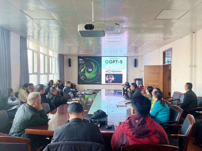 报告中,张太红详细介绍了OpenAI的GPT系列、Suno、OpenArt以及Gemini等国际前沿模型的核心特性,重点阐述了模型之间相互结合、协同,发挥“1+1>2”的集成效能,为多元化的教育与应用场景提供了强大技术支撑。此外,张太红特别分享了大型语言模型在智慧农场项目中的实际运用案例,展示了人工智能技术精准赋能科学研究、提升研究效率与智能化水平的生动实践,为学院的科研工作与教学改革提供了新的思路。