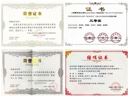大二课业繁重,她毅然迎难而上。在中国大学生人力资源创新实践大赛中,她和团队并肩奋战整整三个月,从西北赛区突出重围,最终跻身全国总决赛,将中国传统文化元素融入现代专业理论,其作品荣获“全国个人一等奖”。她说“奖项固然耀眼,但过程的收获更珍贵“。在压力中磨砺意志,在合作中突破自我,这些在高压下淬炼的品质,让她行得更稳,走得更远。