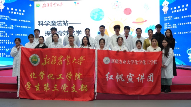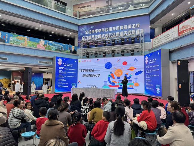 11 月 22 日,化学化工学院“红帆宣讲团”走进新疆科技馆,开展“知识科普”主题党日活动,通过特色实验和互动体验,将抽象难懂的化学原理转化为生动直观的化学现象,为现场观众带来了一场视觉盛宴。