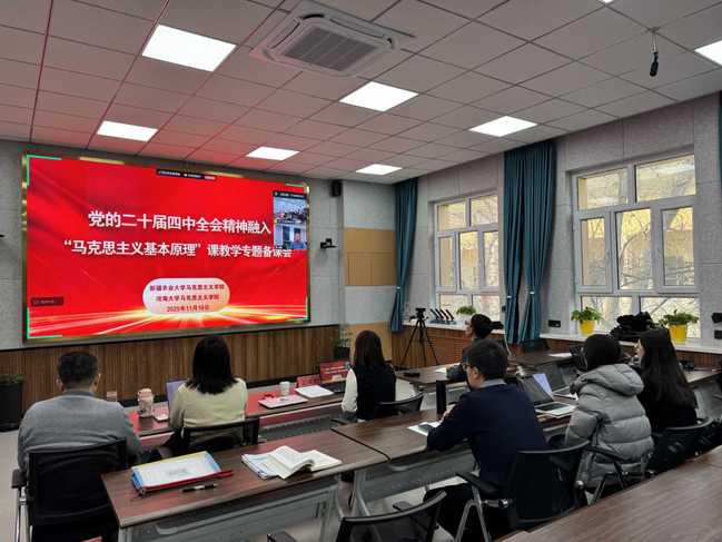 围绕党的二十届四中全会精神融入教学,其余各教研室开展了有针对性的集体备课:《中华民族共同体概论》教研室提出“政策对表—专题设计—案例精讲—实践优化”一体化实施策略,为课程实施提供系统思路。《毛泽东思想和中国特色社会主义理论体系概论》教研室聚焦课程的时代性与理论阐释,明确了二十届四中全会精神融入教学的具体路径。《思想道德与法治》教研室围绕全会精神与教材内容的结合点展开研讨,通过典型案例教学等方式推动教学设计优化,实现课程育人与价值塑造的有机统一。