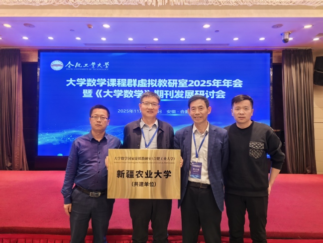 近日,教育部大学数学课程群虚拟教研室2025年年会暨《大学数学》期刊发展研讨会在安徽合肥召开。会上,新疆农业大学入选教育部大学数学课程群虚拟教研室共建单位,标志着我校正式加入这一国家级教学研究平台。