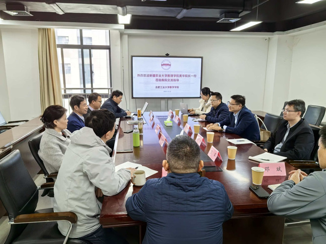 为进一步深化与兄弟院校的战略协作,拓展数学、物理学科领域的合作空间、提升合作实效。11月30日至12月1日,数理学院院长黄华一行5人,先后赴合肥工业大学、安徽建筑大学、安徽农业大学相关院系开展专题调研与深度交流。