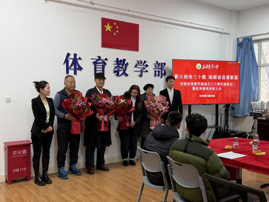 体育教学部对为部门发展做出突出贡献的教职工进行表彰。艾山江·吾守尔等8人获得“三十载体育教育耕耘特别贡献奖”,石韬等4人获得“教学突出奖”,郝洁晴等15人获得“竞赛金牌教练员”称号。