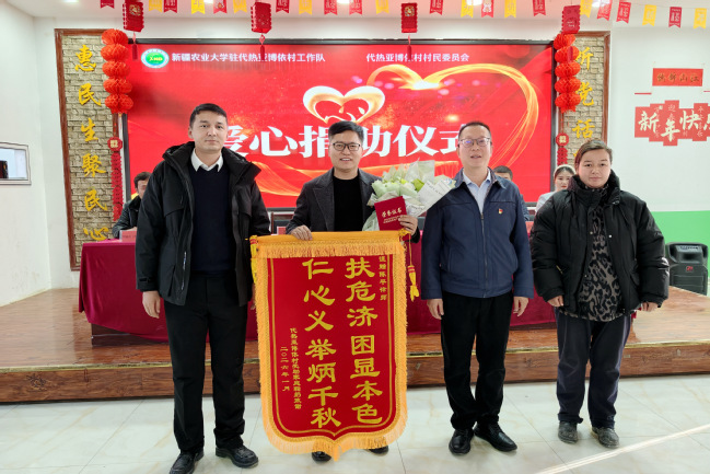 寒冬时节,新疆农业大学驻代热亚博依村工作队举行爱心捐赠仪式,党员律师、村民及驻村工作队共同行动,为16户困难家庭送去温暖,谱写民族团结与互助篇章。