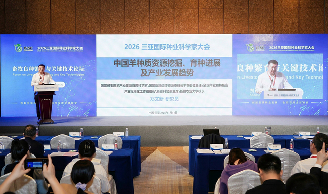 1月14日,2026三亚国际种业科学家大会暨国际种业科技博览会(第五届)在海南三亚隆重召开。新疆农业大学党委副书记、校长郑文新增选为三亚国际种业科学家联合体副主席,受邀担任畜牧良种繁育与关键技术论坛主席并作学术报告。