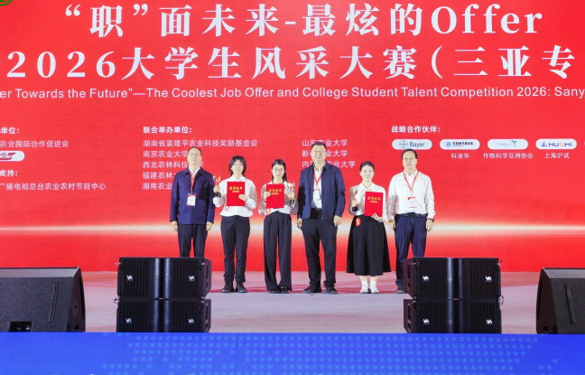 在大会特色活动“职面未来-最炫的Offer暨2026大学生风采大赛三亚专场”中,郑文新作为颁奖嘉宾,为获奖大学生颁奖。他勉励广大农业学子坚定理想信念,将所学知识与国家种业振兴战略紧密结合,勇于探索、勤于实践,成为知农爱农、强农兴农的新型人才,为保障国家粮食安全和重要农产品供给贡献智慧与力量。