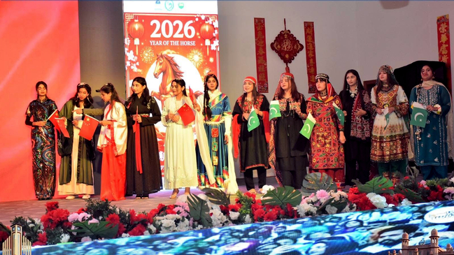 2月12日,新疆农业大学巴基斯坦费萨拉巴德农业大学孔子学院(以下简称“费萨孔院”)在巴隆重举办“2026年春节暨中巴建交75周年庆祝活动”。本次活动吸引了来自当地高校、政府、工商界及在巴中资企业等各界嘉宾和观众240余人参加。