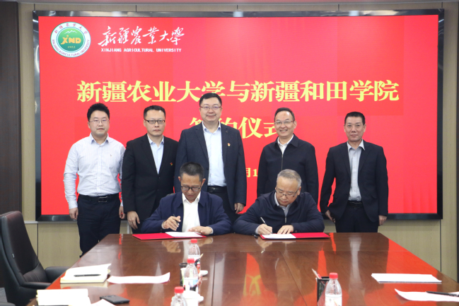 在与会人员的共同见证下,新疆农业大学党委副书记陈勇与新疆和田学院党委常委、副院长秦伟代表双方签订战略合作协议,标志着两校战略合作迈入全方位、深层次的新阶段。