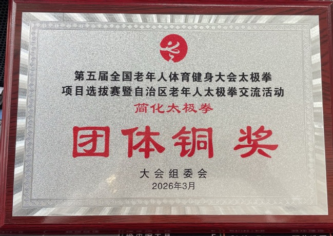 近日,我校离退休职工服务处太极拳活动小组参加第五届全国老年人体育健身大会太极拳项目选拔赛暨自治区老年人太极拳交流活动。队员们凭借饱满状态、扎实功底和默契配合荣获团体铜奖,展现了离退休职工的昂扬风采。