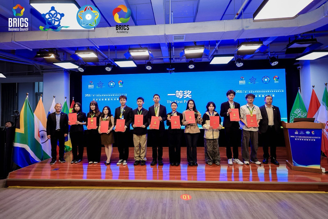 大赛自启动以来,国际教育学院将此次大赛作为检验学科建设与国际化人才培养成效的重要契机,统筹推进备赛各项工作。项目团队紧密结合金砖国家“一带一路”能源合作实际,聚焦能源数字新基建,融合区块链、数字孪生、碳足迹追踪等前沿技术,构建了服务区域能源合作的绿色电力跨境交易新模式,历时3个月反复打磨方案、优化技术路径。国际教育学院院长陈英杰教授全程悉心指导,精准把控项目战略方向与学术高度。项目负责人曹金老师带队参赛,国贸2401班陈珂等成员全力以赴、协同攻坚,在决赛路演与答辩环节展现出扎实的专业功底、出色的创新思维与良好的团队协作能力。