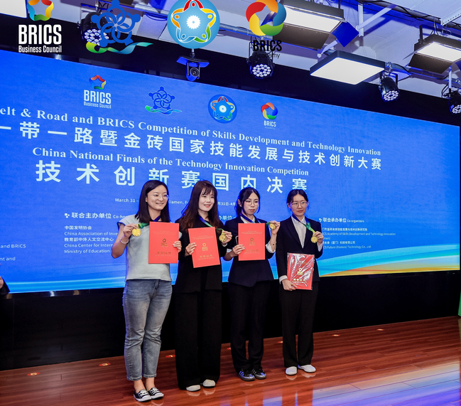 4月3日,2026年“一带一路”暨金砖国家技能发展与技术创新大赛技术创新赛国内决赛在厦门落幕。国际教育学院参赛团队参赛项目《金砖绿色电力可信溯源与跨境交易体系-服务于“一带一路”的能源数字新基建》,从全国1900余支参赛队伍中脱颖而出,荣获大赛一等奖(金奖)。