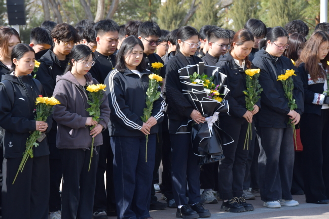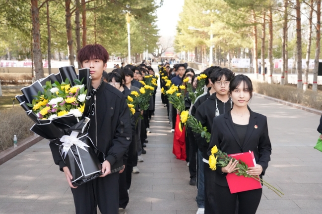 师生们整齐列队,在烈士纪念碑前齐唱国歌,歌声在空旷的广场上格外嘹亮,也格外沉重。默哀的一分钟里,许多人的眼眶红了。献花,鞠躬,重温入党誓词、入团誓词。一句句誓言在陵园上空回荡——这不是一次简单的仪式,而是一场跨越时空的对话:“你们未竟的事业,我们在继续。”