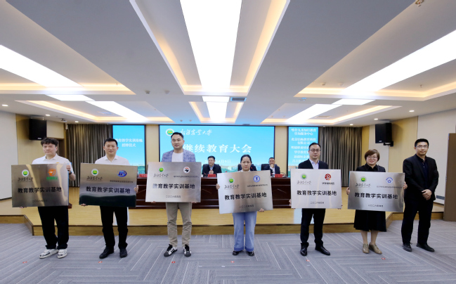 教育教学实训基地授牌仪式上,校党委副书记、副校长董朝霞为新疆中泰(集团)有限责任公司、九圣禾种业股份有限公司、新疆农牧业投资(集团)有限责任公司授牌;校党委常委、组织部部长刘岸杰为喀什九圣知行教育咨询服务中心、北京弘畅教育科技有限公司、新疆明德职业技能培训学校、华学教育集团、新疆恒企教育、昌吉市新至诚职业培训学校授牌。九家合作企业正式成为学校继续教育教学实训基地。