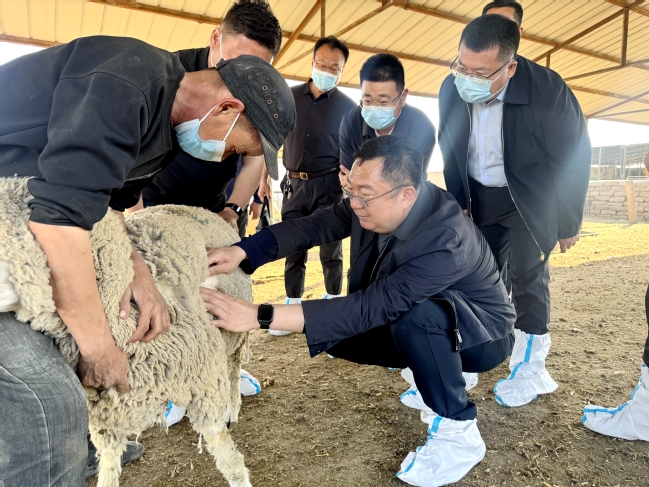 在额敏县种羊场,郑文新实地调研绒毛用羊品种培育、规模化养殖、疫病防控等工作。他指出,额敏县羊产业基础扎实、潜力巨大,种羊场要进一步强化科技赋能,加强与高校的科研合作,聚焦品种优化、生产性能提升等关键环节,为区域羊产业高质量发展提供坚实的种源支撑和技术保障。
