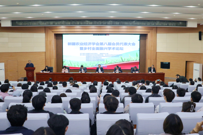 4月18日上午,新疆农业经济学会第八届会员代表大会暨乡村全面振兴学术论坛在新疆农业大学八一礼堂问学厅举行。新疆农业大学党委副书记、校长郑文新,自治区科协秘书长、科创部部长艾斯克尔・台外库力,自治区民政厅社会组织管理局局长董虎山出席会议,来自全区各高校、科研院所、行业部门的会员代表参会,共话农业农村高质量发展,助力乡村全面振兴。