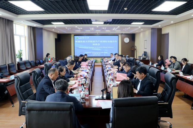 4月16日,促进羊产业国际合作交流合作座谈会在新疆农业大学召开。新疆维吾尔自治区农业农村厅、科学技术厅、工业与信息化厅、畜牧总站、畜牧科学院,乌鲁木齐市农业农村局, 塔城地委、塔城地区农业农村局,国内毛纺织企业的负责人、专家、学者及新疆农业大学专家参加会议。