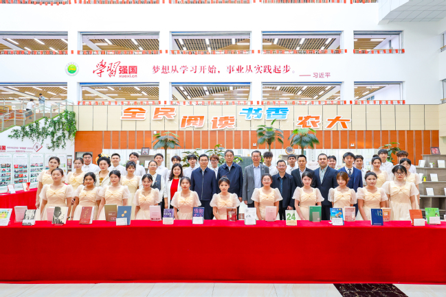 图书馆大厅设立的“禾下悦展”图书展成为启动仪式后的首个打卡点。展览分为中华传统文化百部经典、第二十届文津图书奖获奖作品、红色文化经典图书、“禾下乘凉梦”农书展等四个部分,吸引了众多师生驻足翻阅,在墨香中开启阅读探索之旅。