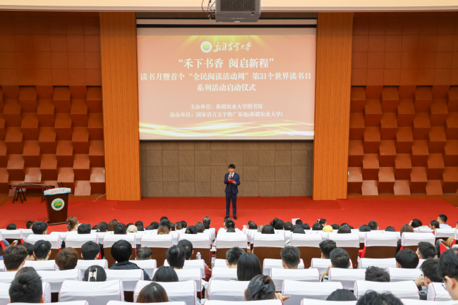 春风浩荡,书香满园;耕读传家,文脉绵长。在这万物竞发、生机勃勃的四月,我们共同迎来了全国首个“全民阅读活动周”和第31个“世界读书日”。4月22日下午,新疆农业大学读书月系列活动启动仪式在学校图书馆求真厅举行。活动以“禾下书香 阅启新程”为主题,以阅读为纽带,紧扣铸牢中华民族共同体意识,深化文化润疆,打造了一场融思想引领、文化传承、学术创新为一体的阅读盛宴,吸引全校400余名师生代表参加。