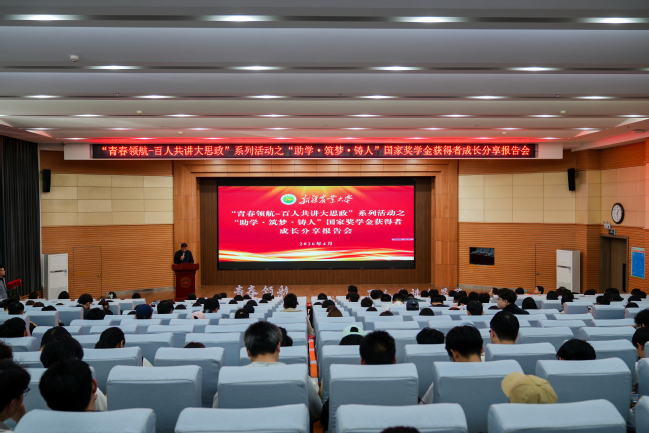为充分发挥榜样示范引领作用,深化资助育人成效,厚植校园励志学风,4月22日至24日,由新疆农业大学党委学生工作部主办的“青春领航-百人共讲大思政”系列主题活动之“助学·筑梦·铸人”国家奖学金获奖者成长分享报告会,在老满城校区八一会堂举办。