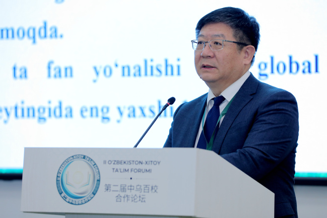 11月2日,第二届中乌百校合作论坛开幕,中国教育部部长怀进鹏、乌兹别克斯坦高等教育、科学与创新部部长孔格拉特拜·沙里波夫等出席活动并发表主旨演讲。谢树青作为中方高校代表参与圆桌会议,围绕“‘一带一路’框架下中乌教育合作与中国—中亚一体化发展”主题深度研讨。
