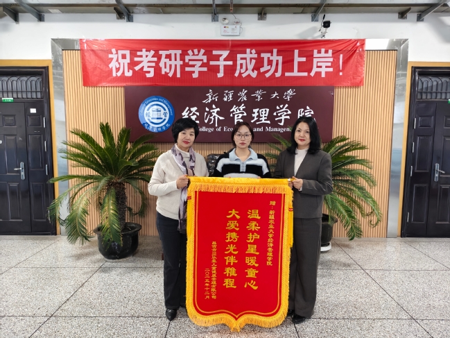12月18日,乌鲁木齐寒风萧瑟,但新疆农业大学经济管理学院的会议室内暖意洋洋。昌吉市贝乐盈康智园康复中心院长张翼一行专程来到学院,将一面饱含谢意的锦旗亲手赠与农林经济管理2503班蒋欣孜同学,对其长期以来向康复中心孩子们提供的爱心捐赠与志愿服务表示诚挚感谢。