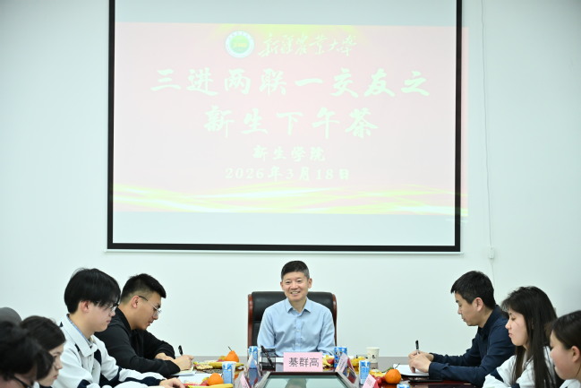 3月18日下午,“三进两联一交友之新生下午茶”在新生学院温馨开启。校党委常委、副校长綦群高与2025级新生代表围坐一堂,倾听心声、共话成长。